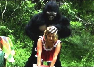 There isn’t much Bigfoot on babe action in 1999 NIGHT OF THE DEMON, but it’s the first film to explore the “Weekly World News” favorite headline “I had Bigfoot’s love child”. This weird hybrid of Bigfoot Hunting and splatter films has the creature killing everyone in sight including some unlucky thirty-five-year-old girl scouts and a biker who is grabbed in the worst possible place while relieving himself. One of the great “you have to see it to believe it” films.